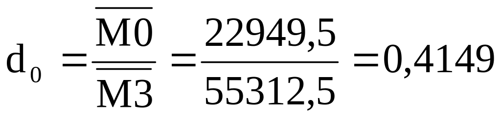 Вплив другого фактору – змін частки параметру М0 в грошовій масі визначають за формулою: