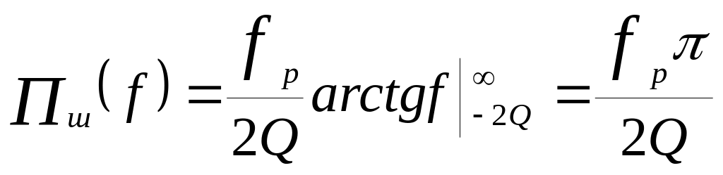Обычно при анализе колебательного контура интегрируется частотами вблизи резонансной частоты, находящимися в полосе ее пропускания. Как известно, границы полосы пропускания соответствуют частотам, на которых а=1. Получим связь шумовой полосы контура с его полосой пропускания.