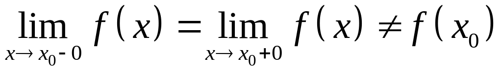 Определение. Если в точке функция имеет пределы слева и справа и они равны между собой, а в точке