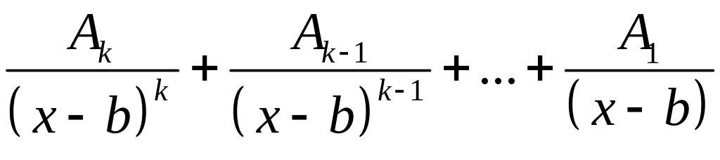 каждому вещественному корню b кратности k соответствует сумма дробей