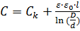 Как известно, емкость идеального цилиндрического конденсатора равна