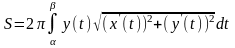?За якою формулою обчислюється поверхня, якщо криву задано параметрично?