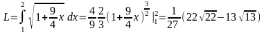 Приклад 1. Обчислити довжину напівкубічної параболи у2=х3 між точками з абсцисами х=1 і x=2.