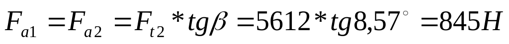 Осевая сила на шестерне и колесе, Н: