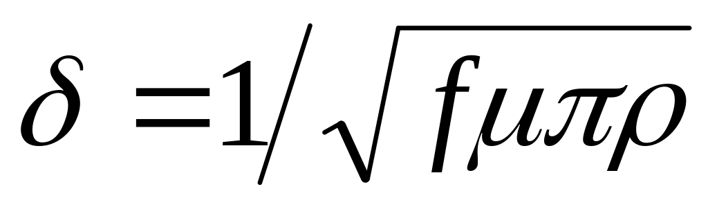 де δ - глибина проникнення поверхневого ефекту в м; f - частота в Гц; μ - проникність μ0·μr; ρ - власна провідність в См/м.