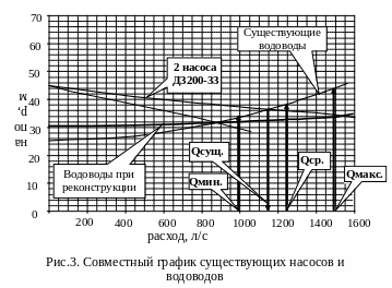 требуемый расход может быть обеспечен существующими насосами с прокладкой третьего дополнительного водовода либо заменой насосов (рис.3);