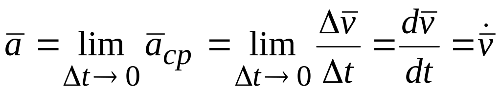По аналогии с векторами скорости вводятся понятия вектора среднего ускорения точки и вектор ускорения точки в данный момент времени. Они характеризуют изменение соответствующих векторов скорости или за промежуток времени , или в данный момент времени.