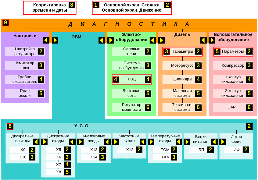 Диагностические кадры отображают полную информацию о той или иной системе тепловоза, собранную с датчиков.