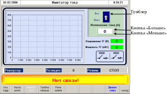 Кадр «Имитатор тока» (см. Рис. 15) предназначен для проверки внешней характеристики тягового генератора.