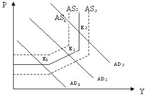 В масштабе национальной экономики могут сложиться три различных ситуации, которые на графике представлены кривой, состоящей из трех частей: