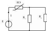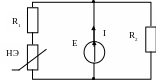 R1=R2=0,1 кОм, I=1мА; ВАХ НЭ известна; Определить значение Е. |