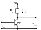 На вход усилителя подаётся напряжение uвх(t)=0,5+2cos10t, В. Проходная ВАХ транзистора известна. Построить график тока ik(ωt). |