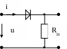 На вход цепи подаётся напряжение u(t)=6cos100t, В. ВАХ диода известна. Построить график тока i(ωt). Rн = 50 Ом, |