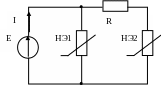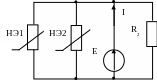 R =0,1 кОм; I=2 мА; ВАХ НЭ известны. Определить значение Е. |
