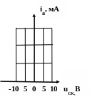 На вход усилителя подаётся напряжение uвх(t)= -5+2cos10t, В. Проходная ВАХ лампы известна. Построить график тока iа(ωt). |