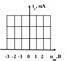 На вход усилителя подаётся напряжение uвх(t)= -1,5+cos1000t, В. Проходная ВАХ транзистора известна. Построить график тока iС(ωt). |