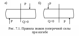 7.3. Правило знаков для изгибающих моментов и поперечных сил