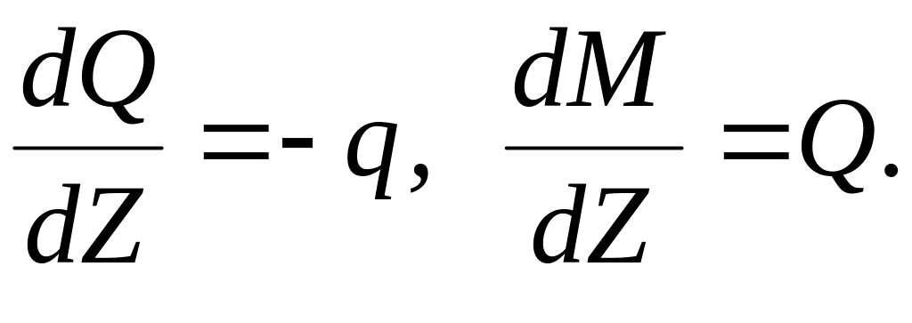 7.4.3. Для каждого участка по формулам (7.1) и (7.2) составляют в общем виде выражения Q и М в зависимости от текущей координаты Z.