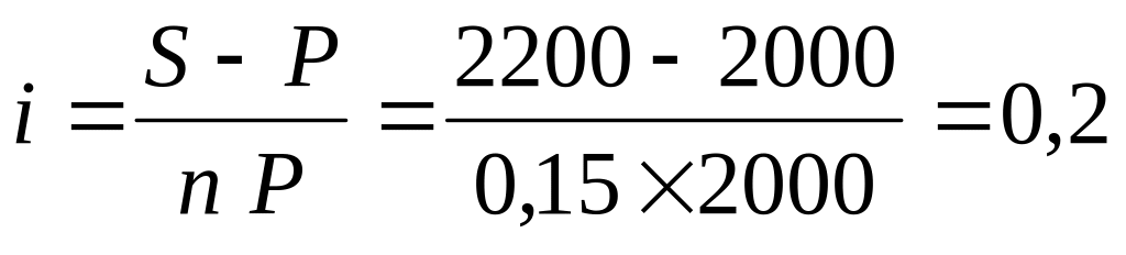 Зная первоначальную сумму Р, наращенную сумму S, период начисления n ( в годах), можно определить простую годовую процентную ставку