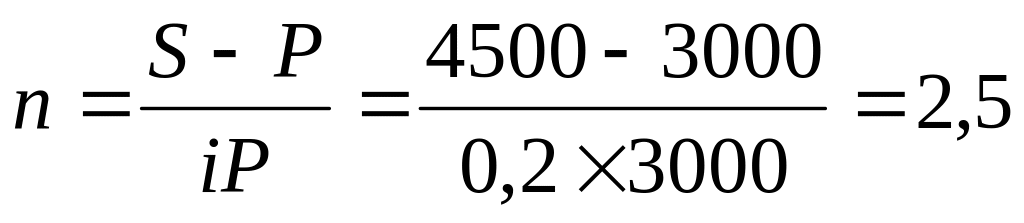 Зная первоначальную сумму Р, простую годовую процентную ставку i , можно определить начисления n ( в годах):