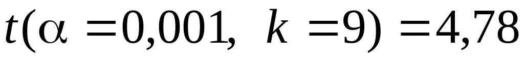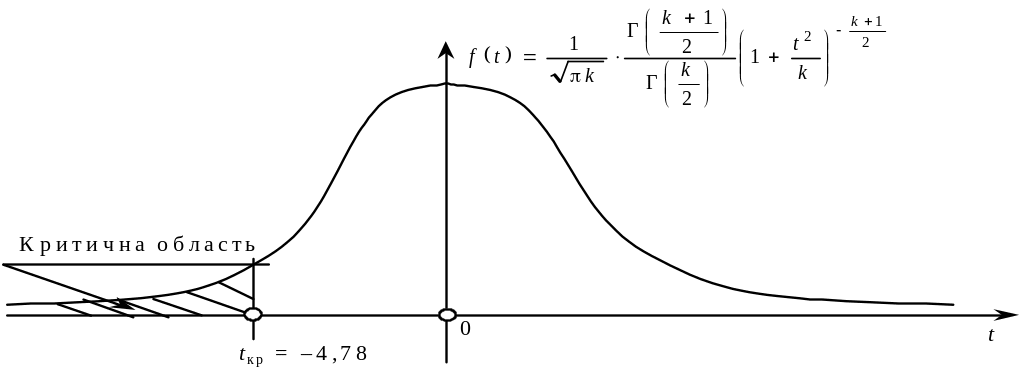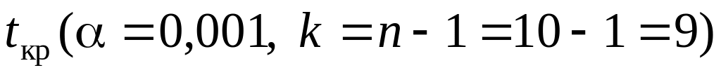 а критичні точки у цьому разі визначаються за таблицею критичних точок розподілу Стьюдента за заданим рівнем значущості та числом ступенів вільності .