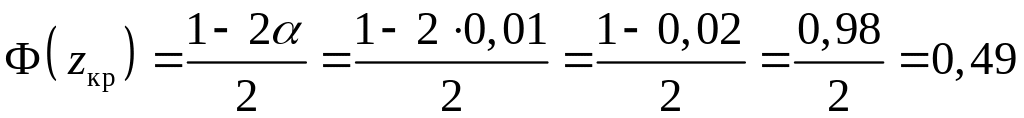 Розв’язання. Оскільки мм, будується правостороння критична область. Для цього необхідно знайти критичну точку і побудувати правосторонню критичну область. Для знаходження критичної точки застосовуємо відомий вираз: