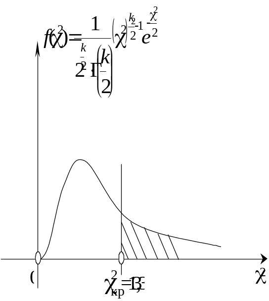 Побудуємо правосторонню критичну область, виходячи з вимоги, щоб ймовірність попадання критерію в цю область в припущенні вірності нульової гіпотези дорівнювала рівню значущості :