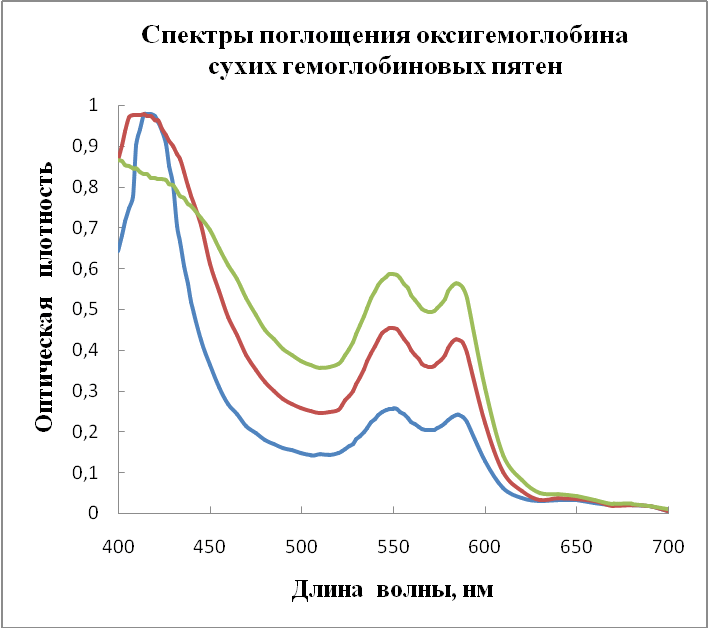 - •Материалы и методы. Регистрация спектров поглощения сухих гемоглобиновых пятен.