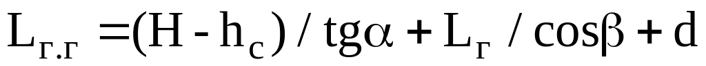 Одержавши значення кута , визначають проекцію довжини стріли, м: