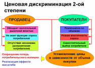 – дискриминация потребителей по отношению к разной оценке времени. Наличие скидок сопровождается дополнительными временными условиями (надо долго ждать получения товара, поездка в дальний магазин и т.д.).