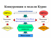 Антуан ОгустинКурно (А. О. Cournot), утверждал, что когда фирма выбирает объем выпуска, максисмизирующий ее прибыль, то, как реакция на это, появится фиксированный объем выпуска конкурентов. В модели Курно для заданного числа фирм всегда существует определенной равновесие по объему выпуска. Модель иллюстрирует механизм установления этого равновесного состояния. Суть его состоит в том, что формируя собственную стратегию поведения, активная фирма вынуждена учитывать возможные варианты реакции конкурентов.