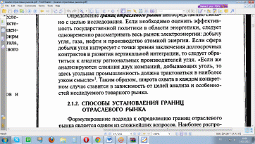 Определение границ отраслевого рынка непосредственно связано с целью исследования. Наиболее распространен подход, согласно которому в границы отраслевого рынка включаются однородный товар и его заменители в течение всего времени, пока не обнаружится разрыв в цепи товаров-субститутов. Как только перекрестная эластичность становится меньше определенной заданной величины, возникает основание говорить об этом разрыве, а значит и о границах этого рынка. Иными словами, задавая различные значения перекрестной ценовой эластичности можно получить разные представления о масштабах одного и того отраслевого рынка.