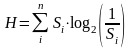 Показатель 4) основан на понятии энтропии (Н). Пусть на рынке присутствует n торговых марок и Si ― доля торговой марки i в общем объеме продаж товаров, служащих для удовлетворения данной потребности. Тогда степень дифференцированности продукции на рынке может быть количественно измерена как: