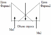 Товарные марки отличаются друг от друга только удаленностью от потребителя. Потребитель будет предпочитать ту фирму, к которой он ближе расположен. Установление рыночных цен при фиксированном местоположении фирм определяется величиной транспортных расходов. Если фирмы находятся на разных расстояниях от потребителя, то ближайшая фирма может назначить более высокую цену на свой товар. Поэтому удобно расположенная фирма обладает определенной рыночной властью, что и позволяет ей назначать чуть более высокие цены. Однако чем дальше расположены потребители от одной фирмы и чем ближе к другой, тем слабее оказывается монопольное воздействие первой фирмы на спрос, тем сильнее будет проявляться степень ценовой конкуренции между ними.