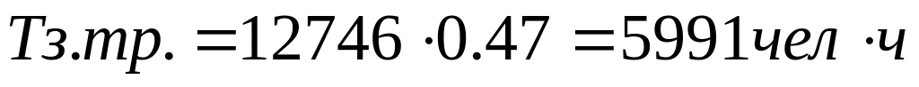 где ТР – трудозатраты данного цеха, чел•ч;
