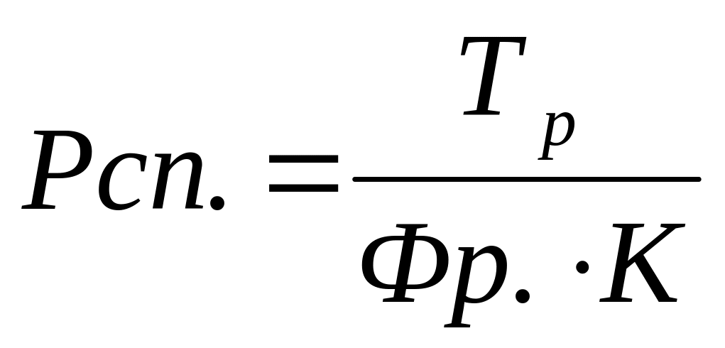 Списочное количество рабочих Рсп., чел., находится по формуле