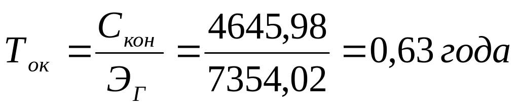 Подставляем известные значения в формулу (6.15) и определяем срок окупаемости