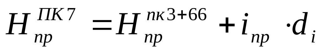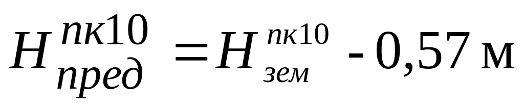 После построения проектной линии рассчитываем рабочие отметки на каждой точке профиля.