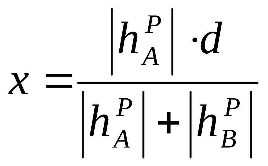 Но для определения отметки точек нулевых работ предварительно вычисляем плановое положение этих точек по формулам: