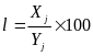 По каждому региону рассчитываются частные показатели локализации (l):