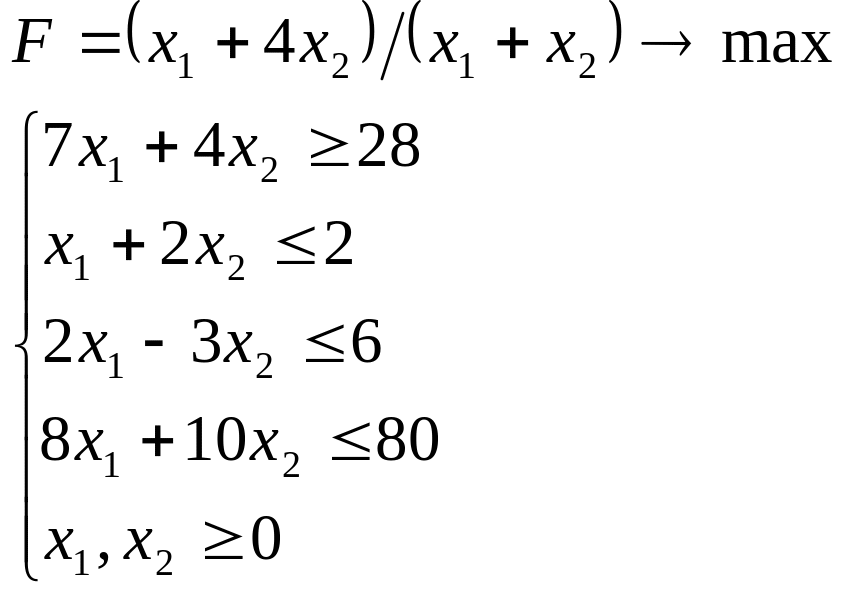 - •3. Розв’язати задачу дробово-лінійного програмування графічним методом:
