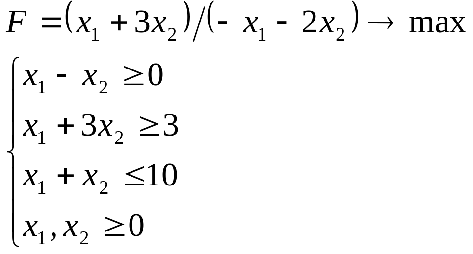 - •3. Розв’язати задачу дробово-лінійного програмування графічним методом: