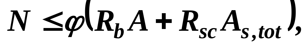 де N – розрахункова поздовжня сила у перерізі елемента; А – площа перерізу; As,tot – площа усієї арматури у перерізі; – коефіцієнт поздовжнього згину, який визначають за формулою