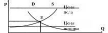 Цена пола - минимальная цена, которая служит для защиты производителей и создает превышение предложения над спросом. Она имеет смысл только тогда, когда выше равновесной. Однако стремление производителей в условиях перепроизводства (например, сельхозпродукции) избавиться от товара ведет к образованию "серого рынка".