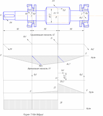 Вычерчиваем конструктивную и расчетную схему нагружения вала.