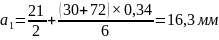 При установке подшипников необходимо учитывать, что радиальные реакции считаются приложенными к валу в точках пересечения нормалей, проведенных к серединам координатных площадок. Для однорядных конических роликоподшипников 7306 определяем по формуле: