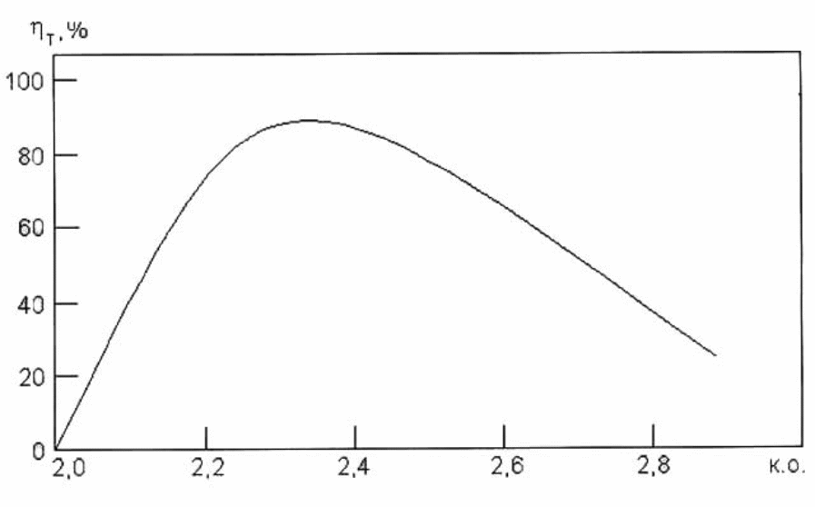 Таким образом, с уменьшением к.о. до 2,2 - 2,3 выход по току увеличивается (рис. 8).