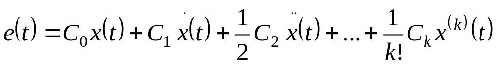 Первое слагаемое в выражении (6.2) называют ошибкой по положению, а коэффициент -коэффициентом ошибки по положению, второе слагаемое – ошибкой по скорости, а коэффициент - коэффициентом ошибки по скорости. Аналогично, третье слагаемое в (6.2) называют ошибкой по ускорению, а коэффициент - коэффициентом ошибки по ускорению.