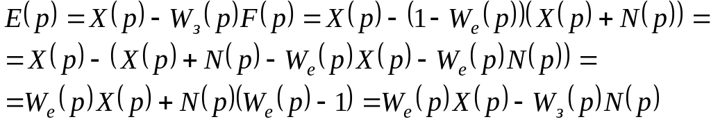 Первое слагаемое в (7.2) определяет среднюю квадратическую ошибку воспроизведения сигнала .Второе слагаемое в (7.2) характеризует ошибку вследствие действия помехи . Последние два слагаемых в (7.2) – составляющие ошибки из-за корреляции сигнала с помехой и помехи с сигналом.