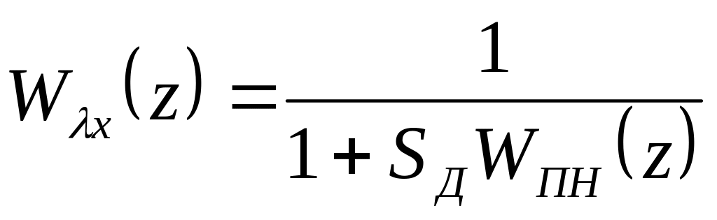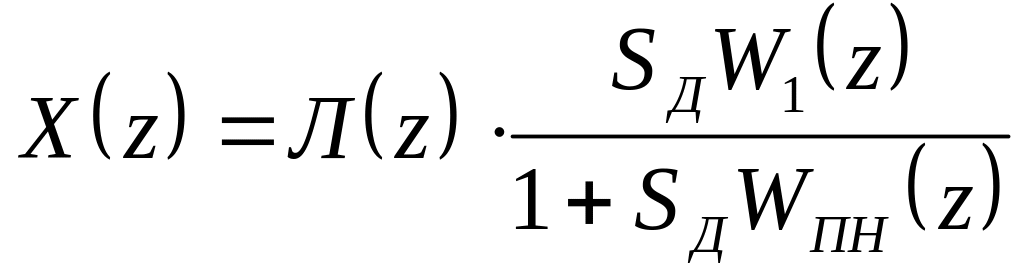 Отсюда следует, что искомая передаточная функция рассматриваемой замкнутой дискретной системы описывается соотношением: